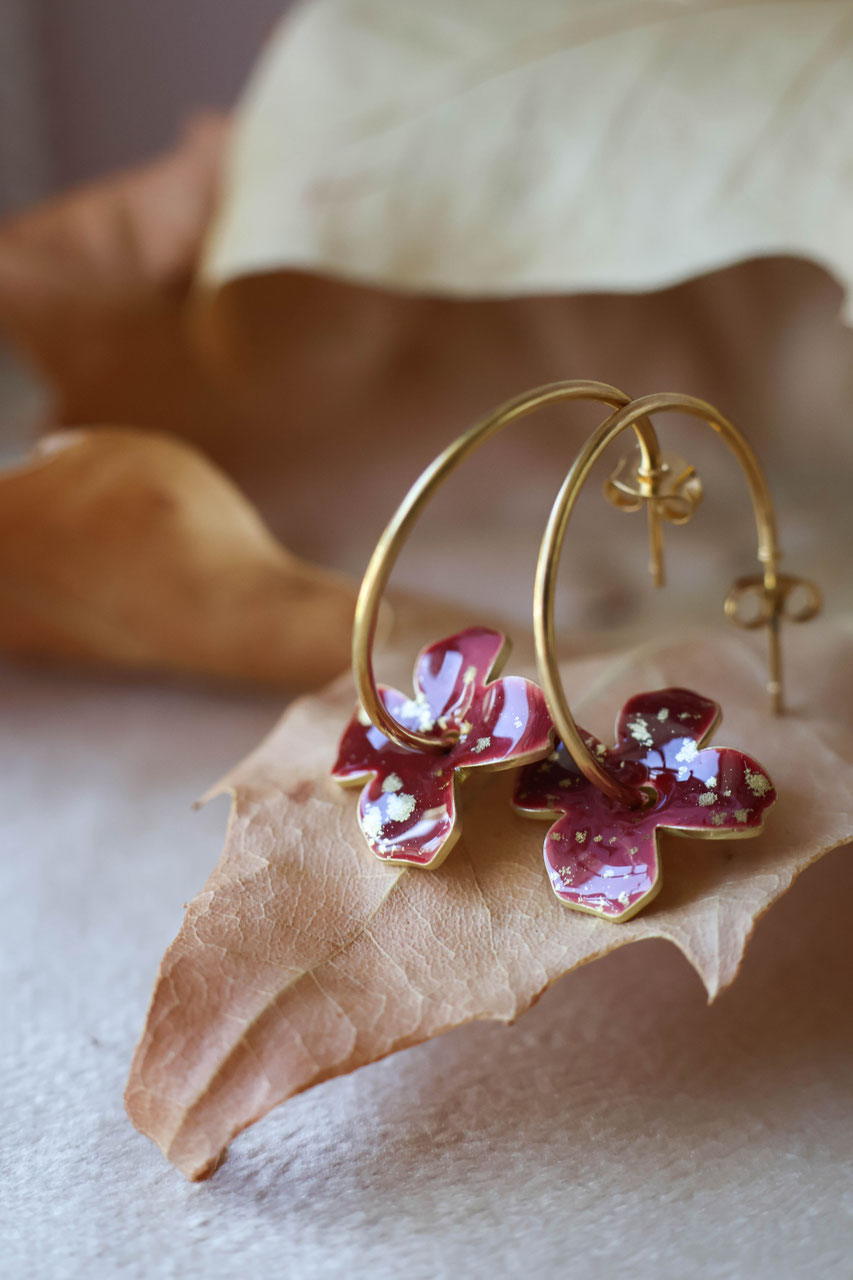 Boucles d'oreilles en laiton galvanisé doré avec émaillage à froid (résine) .