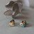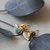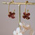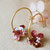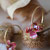 Boucles d'oreilles et pendants en acier inoxydable doré avec émaillage à froid (résine) et fleur en tissu.